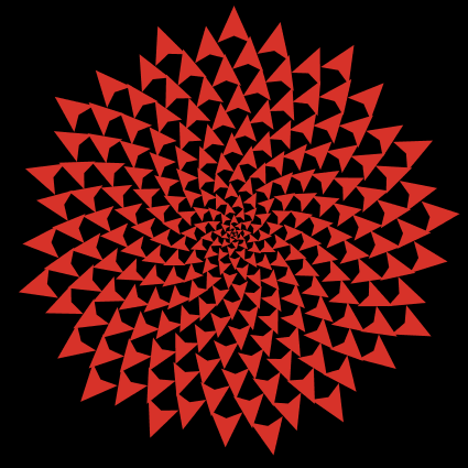 For each clock-tick, a new turtle (can be seen as a seed or a petal) is created. As in nature, the turtle finds the appropriate position and begins growing. The 'appropriate position' is defined as the number of clock-ticks times the 'turn increment'. All of the other existing turtles move forward and grow slightly, with each clock-tick. If a turtle gets too close to the edge of the world, it dies.