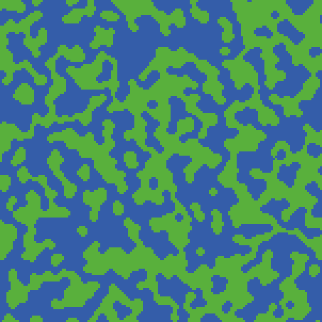 Start with a nonrandom green-and-blue pattern. For example, one could make half of the world blue and half green.