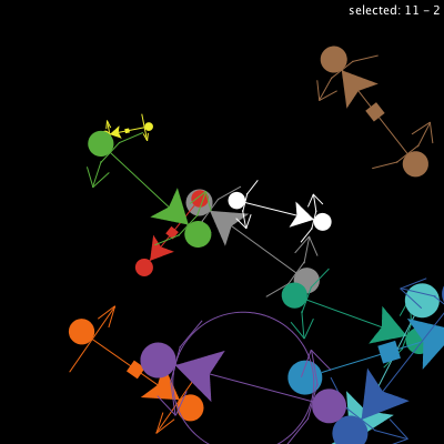 You can start with a standard machine, or generate a random one. You can change and build machines yourself, by changing the characteristics of each part. You can sit back and let the machines play themselves, or you can use the mouse to move them around to control the sound yourself.