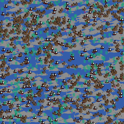 setxy random-xcor random-ycor; they used to live everywhere, it's indifferent if near the shore or in the deepest water, for that the program is setted on random