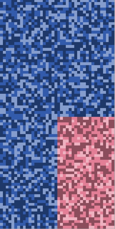 In this model, the patches represent nuclei that are in different energy states. These states can change based on the surrounding nuclei of a specific chosen nuclei or patch as referenced in the program. Note, that flipping will only occur when the overal energy of the surrounding patch is different than the energy level of the patch itself. The right and left spin groups, blue and pink, allow the observer to creat dynamic environments in which each spin group will interact with one another.